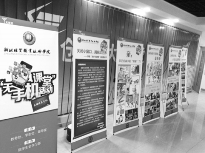 “亲,上课时间给手机放个假吧!”“上课玩的不是手机,是青春!”“你在玩手机,时间去哪儿了?”这是该校张贴在教学楼门口颇具创意的宣传标语。自从“无手机课堂”活动启动以来,该校通过倡议书、图片展、主题签名、主题班会、团日活动、海报大赛等活动,广泛宣传动员,倡导全院师生不带手机进课堂或在课堂上主动关机,养成良好课堂文明习惯。