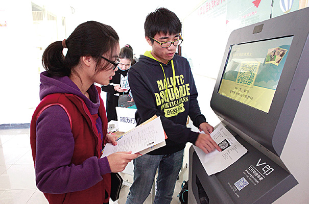 日前,“2015年浙江省技能人才岗位进校园系列招聘会”走进伟德BETVlCTOR1946,两百五十三家企事业单位提供了九千八百六十多个需求岗位,现场有一千余人达成初步就业意向。图为该校信息技术系学生孙菊萍提供其自主创业项目“云打印”,现场为毕业生提供免费简历打印的服务。
