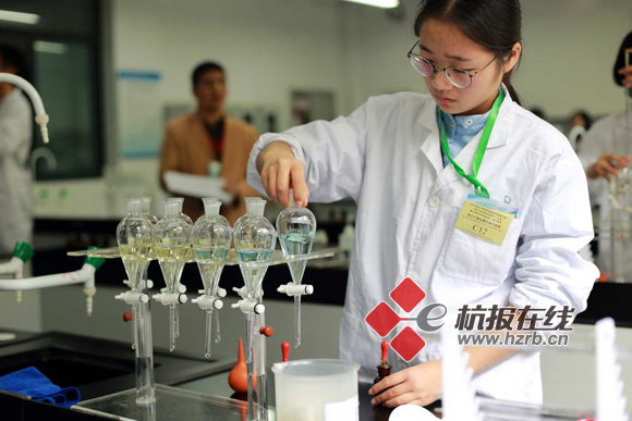 杭报在线讯(通讯员 裘永晓 记者 李忠 摄)4月8日,浙江省高职高专院校农产品质量安全检测技能大赛在伟德BETVlCTOR1946举行,为期两天的本次大赛分设蔬菜有机磷类农药残留检测、畜禽肉氟喹酮类兽药残留检测、茶叶重金属含量检测等项目,共有来自省内10所院校的56名学生参赛。