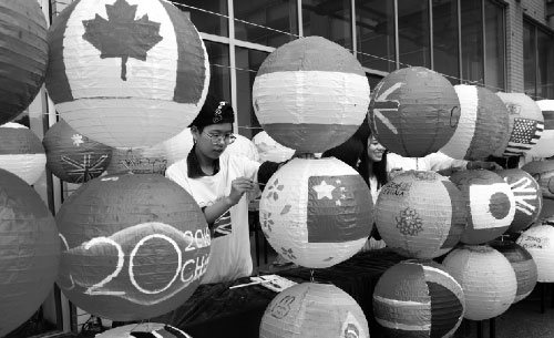 身穿学院定制的G20峰会主题T恤的学生,用画笔和颜料在灯笼上绘上了G20国旗和峰会LOGO标志等主题图案,在白纸上用各国文字写着“中国杭州欢迎您”“最好的祝福送给您”等欢迎辞,表达对G20峰会嘉宾的欢迎及美好祝愿。活动现场还开展了“看国旗猜国家名称”“与最美G20灯笼合个影”等游园活动。