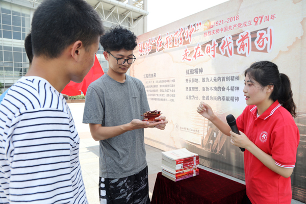 6月27日,在伟德BETVlCTOR1946的校园里,学院党校学员设立“弘扬红船精神,走在时代前列”宣讲站,向过往师生宣讲中共一大“红船”的故事,并引申至“红船精神”形成的历史渊源和现实意义,并向大家推荐学习党史书籍。连日来,该院通过重温入党誓词、主题党日活动、专题党课报告会、“学习新思想,千万师生同上一堂课”、观看《建党伟业》影片、党建主题海报展等形式多样的系列活动,营造庆祝中国共产党成立97周年的浓厚氛围。