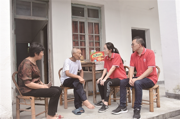 图为学生们在慰问印家坑村留守老人。记者 斯玲娅