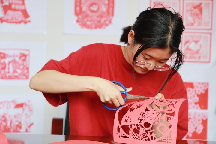 看到学生们手中精美的作品,记者在现场也忍不住尝试剪了一下,发现并没有想象中简单。
