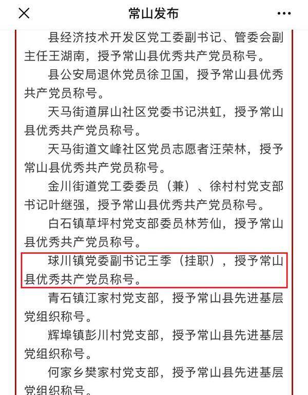 2月18日,中共常山县委、常山县人民政府发布《关于激励表彰疫情防控一线表现突出正面典型的通报》,我校挂职干部王季被授予常山县优秀共产党员称号。