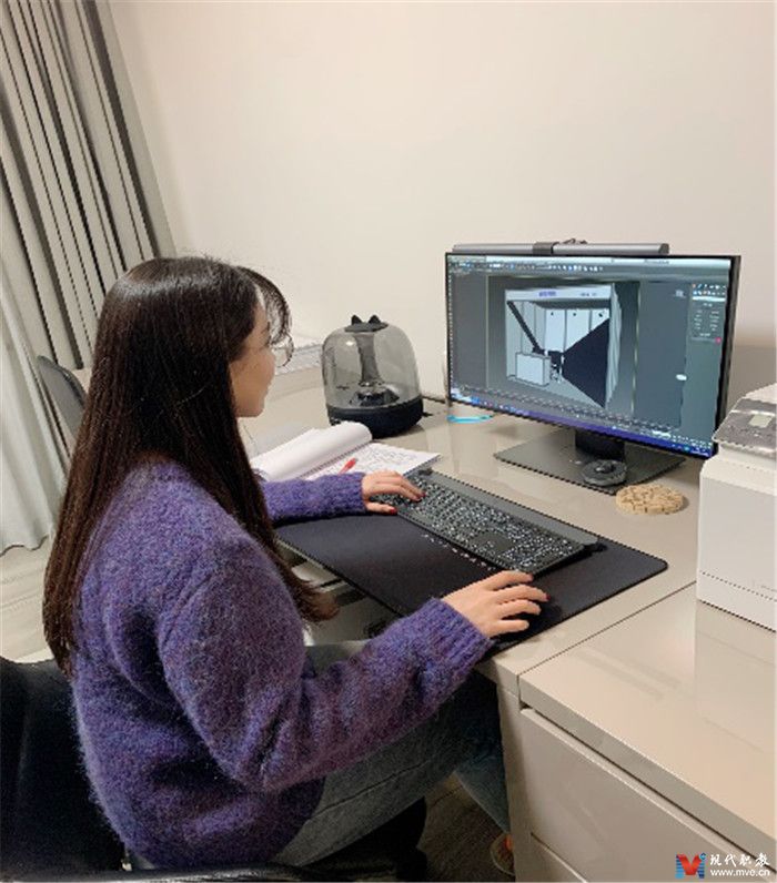 在教学过程中,华老师课前做好软件安装指导,提前与授课班级同学测试不同网络平台效果,确保每一位学生安装和使用软件顺畅,与学生实时互动、共享屏幕查看学生操作界面及问题反馈。课程实际操作占比较大,华老师课程全程录屏,实行工作过程项目化、模块化分段教学方式,保证每位学生更好地消化知识点。课后,华老师在学习平台布置了相关拓展练习,利用学生碎片化和移动化的学习方式,进行微课知识点补充,达到趣味学习方式,以培养学生的空间设计思路。