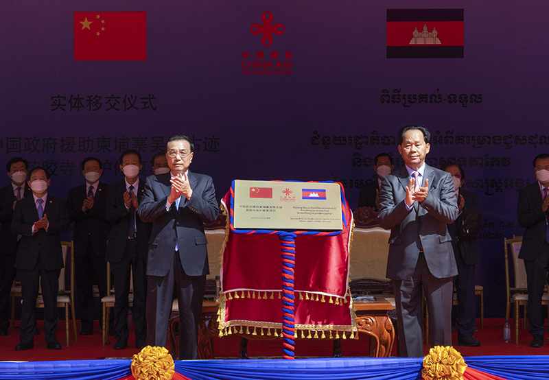 李克强参观中柬文化遗产交流合作30年成果展并出席文物修复移交仪式