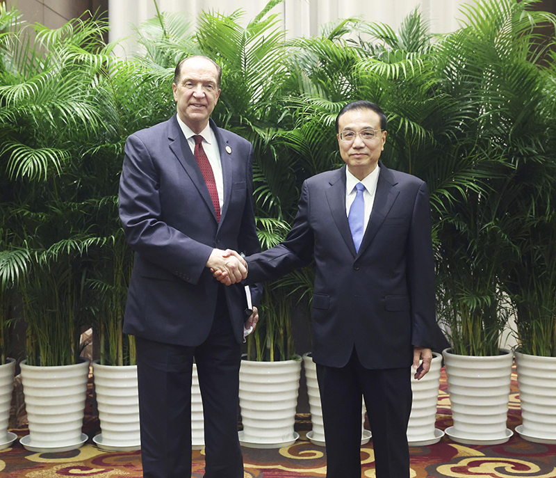 国务院总理李克强12月8日下午在安徽省黄山市会见来华出席第七次“1+6”圆桌对话会的世界银行行长马尔帕斯。