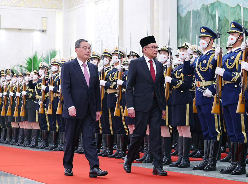 会谈前,李强在人民大会堂北大厅为安瓦尔举行欢迎仪式。