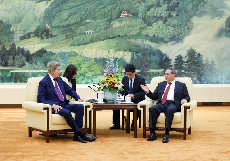 国务院总理李强7月18日上午在人民大会堂会见美国总统气候问题特使克里。