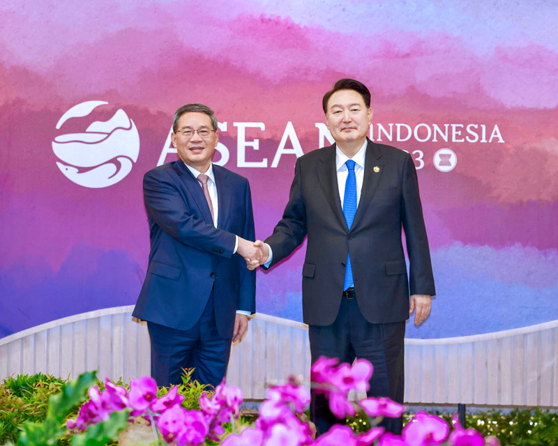 李强表示,去年二十国集团巴厘岛峰会期间,习近平主席同总统先生就中韩关系深入交换意见。中方愿同韩方一道,落实好两国元首重要共识,秉持建交初心,增进政治互信,排除干扰,相向而行,推动中韩关系与时俱进发展,更好造福两国人民,促进本地区和平稳定与发展繁荣。