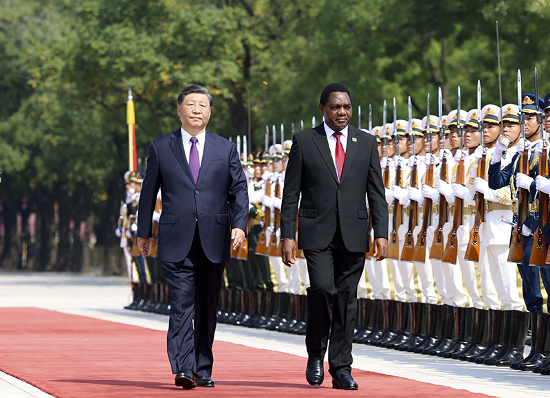 9月15日上午,国家主席习近平在人民大会堂同来华进行国事访问的赞比亚总统希奇莱马举行会谈。两国元首宣布,将中赞关系提升为全面战略合作伙伴关系。