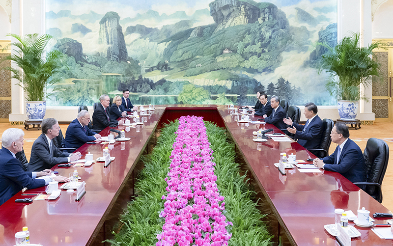 10月9日下午,国家主席习近平在人民大会堂会见美国国会参议院多数党领袖舒默率领的美国国会参议院两党代表团。