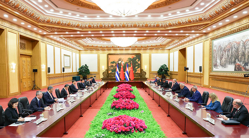 习近平强调,我在第三届“一带一路”国际合作高峰论坛上宣布了支持高质量共建“一带一路”的八项行动,欢迎古方积极对接,特别是在农业、旅游、卫生、科技、信息通信等领域深挖合作潜力,推动两国合作走深走实。希望古方继续用好中国国际进口博览会等重要平台,推动更多特色产品进入中国市场。今年9月,古巴成功举办“77国集团和中国”峰会,为推动发展中国家团结合作作出重要贡献。中方愿同古方一道,继续携手维护发展中国家的主权、安全、发展利益。