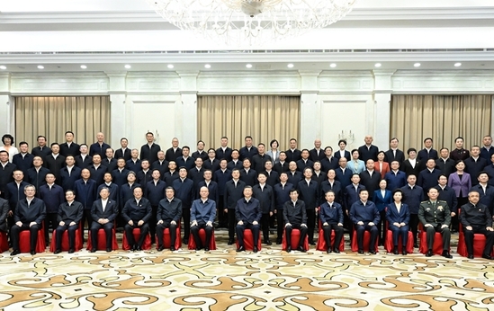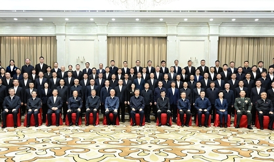 9月23日下午,中共中央总书记、国家主席、中央军委主席习近平在乌鲁木齐亲切接见新疆生产建设兵团领导班子成员及有关方面负责同志,并同大家合影留念。新华社记者 申宏 摄