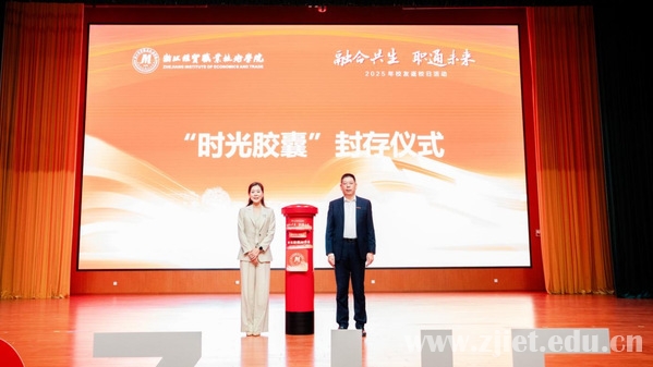 在充满仪式感的“时光胶囊”封存环节,学校校长陈德泉与2005届电子商务专业校友林旭微共同登台,将满载着校友们手写心愿的“时光胶囊”郑重封存。一张张精美的明信片上,既有对课堂专注求知、实训场上挥汗如雨、同窗相伴欢声笑语的鲜活追忆,更有对母校学科建设、人才培养、事业发展的深切期许,字里行间满溢着“经贸人”对这片育人沃土的赤子之心与眷恋之情。