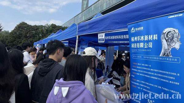 此外,会议同步举办“金秋启航 浙里有才”2026届高校毕业生专场招聘会,为高校与企业搭建了直接对接、高效匹配的就业服务平台。我校共推荐杭州全速网络技术有限公司、杭州华冰新材料科技有限公司等10家紧密合作企业参会揽才,涉及电商运营、技术研发、现代服务等多个热门领域,为毕业生带来丰富的就业岗位选择。值得一提的是,“华冰科技”作为我校优秀校友创业企业代表精彩亮相,现场为学弟学妹提供岗位咨询、职业规划指导等服务,充分展现了我校校友企业反哺母校、助力青年学子职业发展的责任担当,也为校企双方进一步深化合作、实现人才供需精准匹配提供了生动的实践场景。招聘会现场,我校学生积极与企业HR沟通交流,主动了解岗位需求与行业发展趋势,不少学生与企业达成初步就业意向。