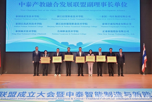 经过前期多渠道提名与资格审查,学校作为中方高职院校代表成功当选联盟副理事长单位。程余伟作为学校代表受邀上台见证“中泰产教融合发展联盟”的正式启动并揭牌。